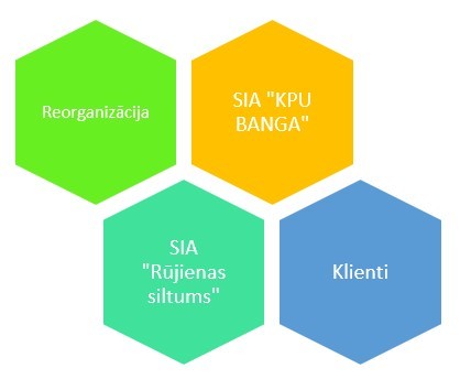 Ar Valmieras novada pašvaldības domes 28.07.2022. lēmumu Nr.466 (protokols Nr.14, 14.§) “Par Sabiedrības ar ierobežotu atbildību “BANGA KPU”, Pašvaldības SIA “RŪJIENAS SILTUMS” un Sabiedrības ar ierobežotu atbildību “VALMIERAS NAMSAIMNIEKS” reorganizācijas uzsākšanu” (turpmāk – 28.07.2022. lēmums Nr.466), tika nolemts uzsākt Sabiedrības ar ierobežotu atbildību "BANGA KPU" to sadalot sašķelšanas ceļā, pievienojot daļu Sabiedrības ar ierobežotu atbildību "BANGA KPU" mantas, kas nepieciešama ūdenssaimniecības pakalpojumu sniegšanai, Pašvaldības SIA “RŪJIENAS SILTUMS”, reģistrācijas Nr.44103023807, savukārt daļu mantas, kas nepieciešama dzīvojamo un nedzīvojamo ēku pārvaldīšanas un remonta, pašvaldības infrastruktūras uzturēšanas un apsaimniekošanas pakalpojumu sniegšanai – Sabiedrībai ar ierobežotu atbildību “VALMIERAS NAMSAIMNIEKS”, reģistrācijas Nr. 44103022271.